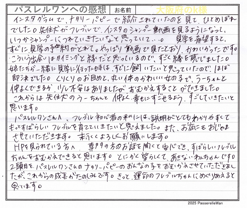 専門の方のお話を聞くと安心でき、素晴らしいフレブルちゃんを…