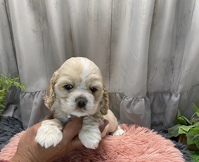 アメリカンコッカースパニエル専門 青リボン ■血統 両親共に優良血統 母犬‥毛色:バフ 父犬‥毛色:バフ JKCチャンピオン直子 初回ワクチン費用、血統書発行費用、マイクロチップ装置費用、健康診断込み(送料別) |