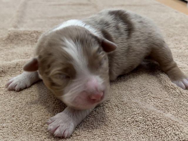 こだわりの犬舎で生まれました、お顔立ちの整った、ミニチュア・アメリカン・シェパード子犬です。