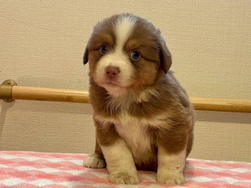 こだわりの犬舎で生まれました、お顔立ちの整った、ミニチュア・アメリカン・シェパード子犬です。