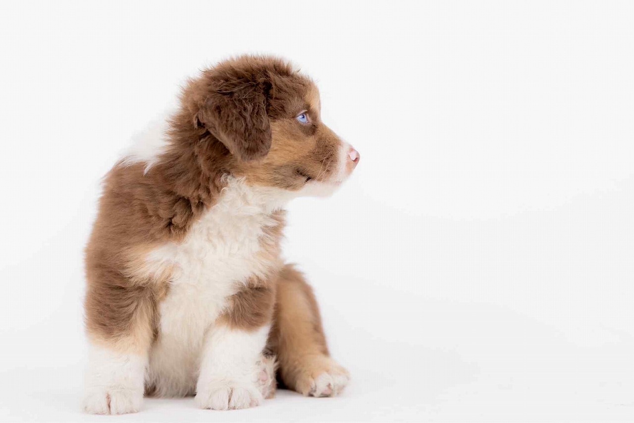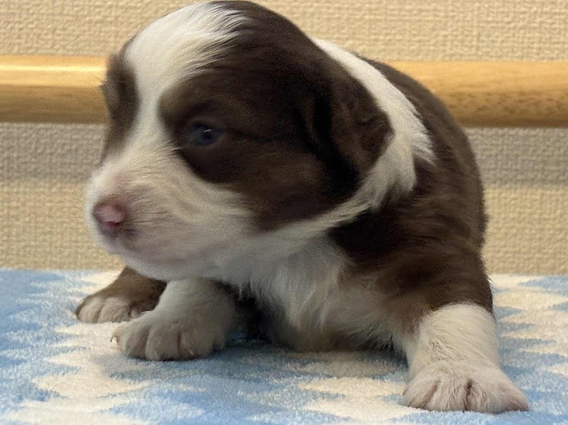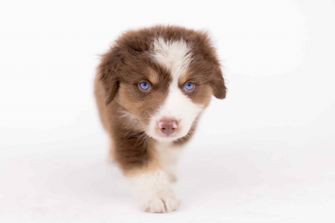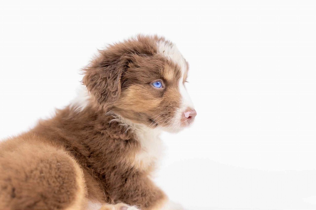 こだわりの犬舎で生まれました、お顔立ちの整った、ミニチュア・アメリカン・シェパード子犬です。