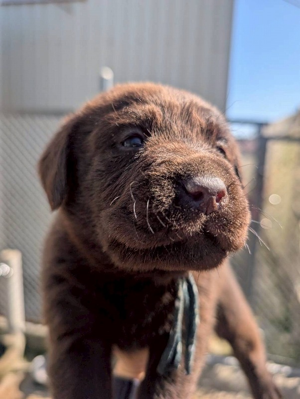 おっとり系なチョコラブくんです。人懐っこく、犬舎スタッフの元に寄って来る可愛い男の子です。